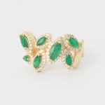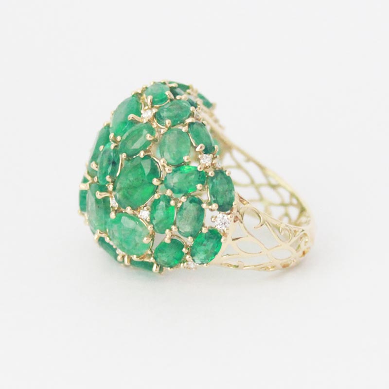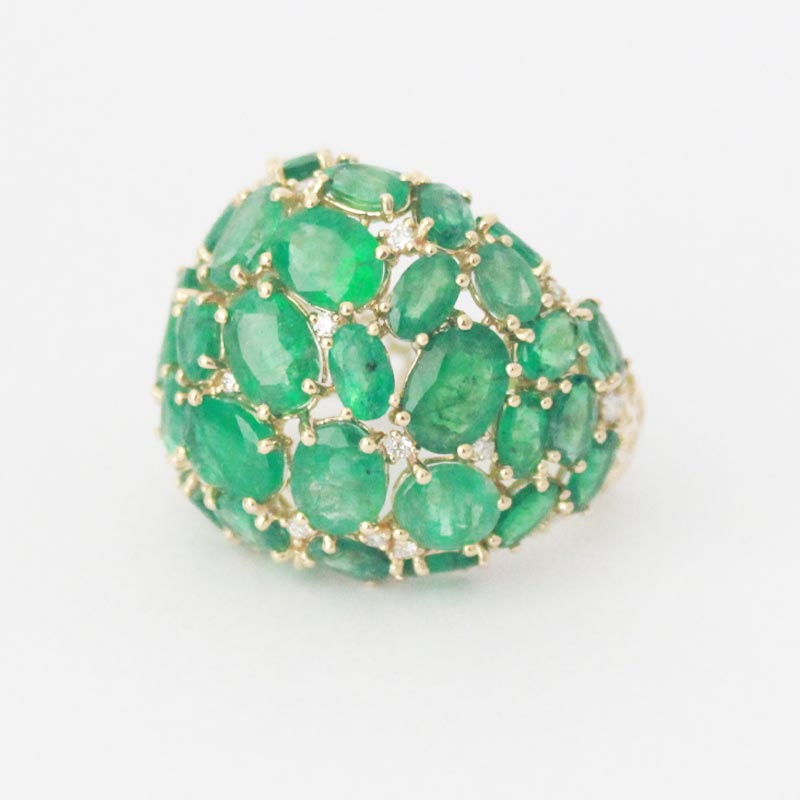 ANILLO DE ORO AMARILLO DE ESMERALDAS CON BRILLANTES