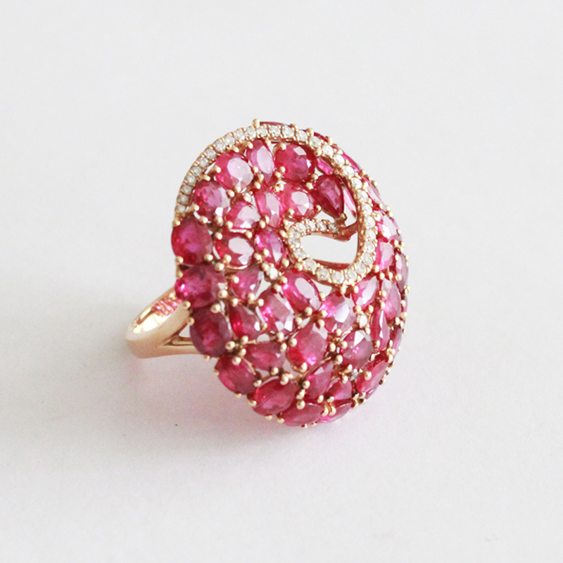 ANILLO DE ORO ROSADO REDONDO DE RUBI CON ESPIRAL DE BRILLANTES