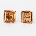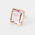 ANILLO DE ORO AMARILLO GEMAS RECTANGULAR PERIDOT CON BORDE DE BRILLANTES