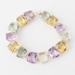 ANILLO DE ORO AMARILLO GEMAS RECTANGULAR TOPACIO AHUMADO CON BORDE DE BRILLANTES