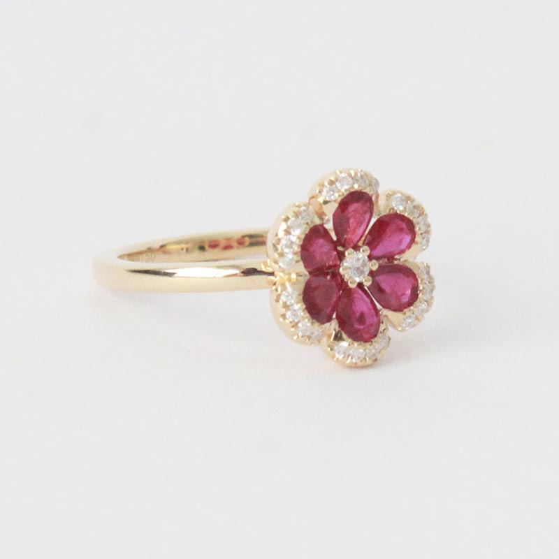 ANILLO DE ORO AMARILLO FLOR DE RUBIES Y BRILLANTES