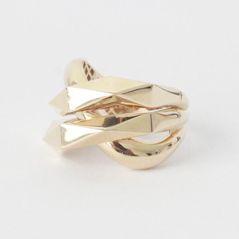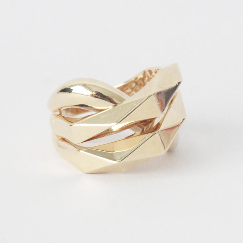 ANILLO DE ORO AMARILLO VARIAS FILAS CRUZADAS LABRADO