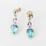 ARETES DE ORO AMARILLO GOTAS CITRINA AMARILLA TOPACIO AMARILLO, CUARZO VERDE Y PERIDOT