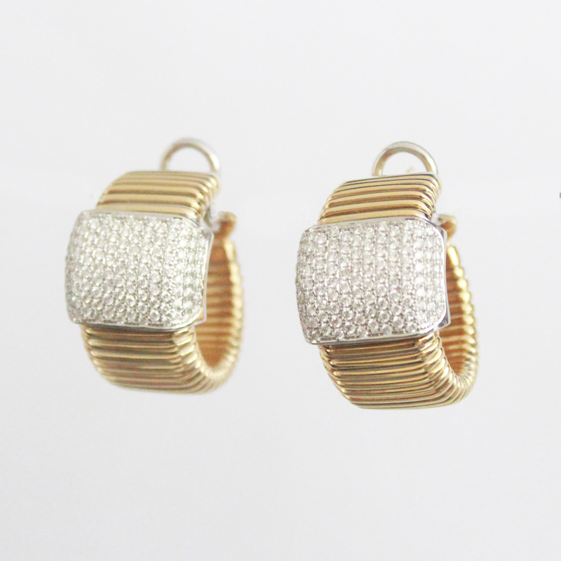 ARGOLLAS DE ORO COMBINADO LABRADAS CON FRANJA DE BRILLANTES PAVE