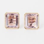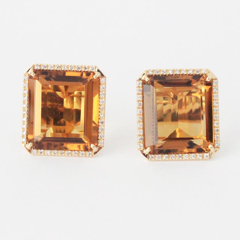 ARETES DE ORO AMARILLO RECTANGULARES TOPACIO AHUMADO CON BRILLANTES EN EL BORDE