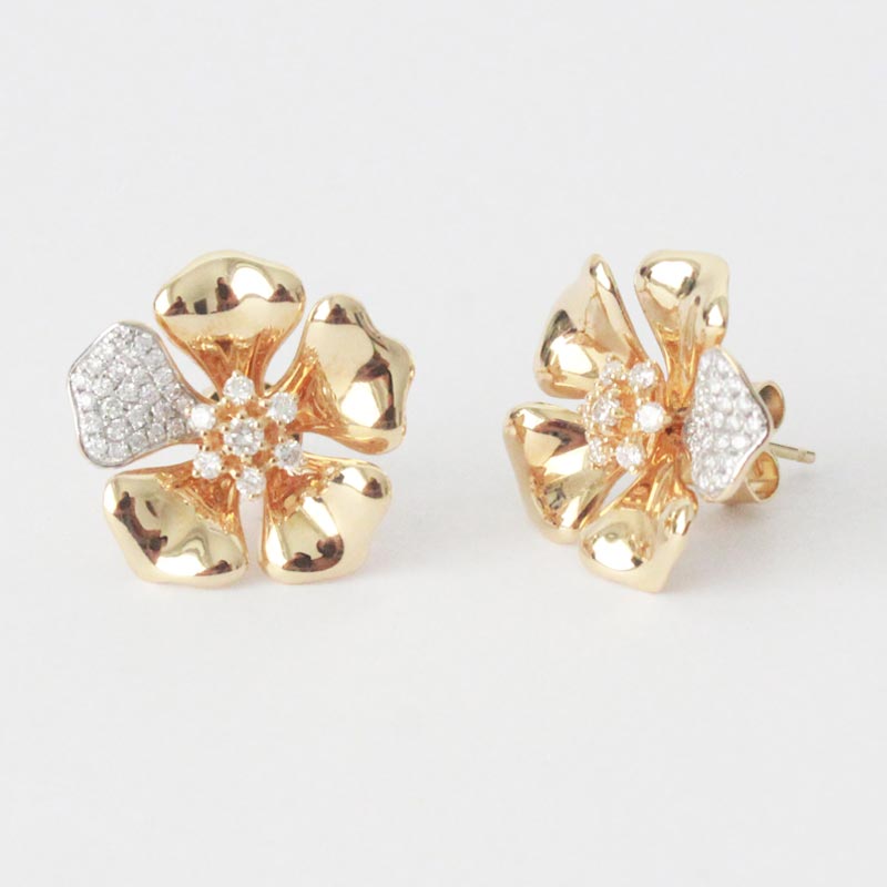 ARETES FLOR DE ORO AMARILLO Y BRILLANTES