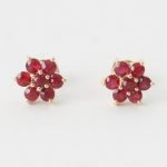 ARETES DE ORO AMARILLO FLOR DE ESMERALDA CENTRO DE BRILLANTE