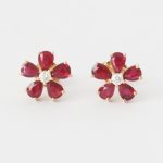 ARETES DE ORO AMARILLO FLOR PETALOS DE ZAFIROS AZULES CON BRILLANTE