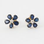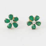 ARETES DE ORO AMARILLO FLOR PETALOS DE RUBIES CON BRILLANTE