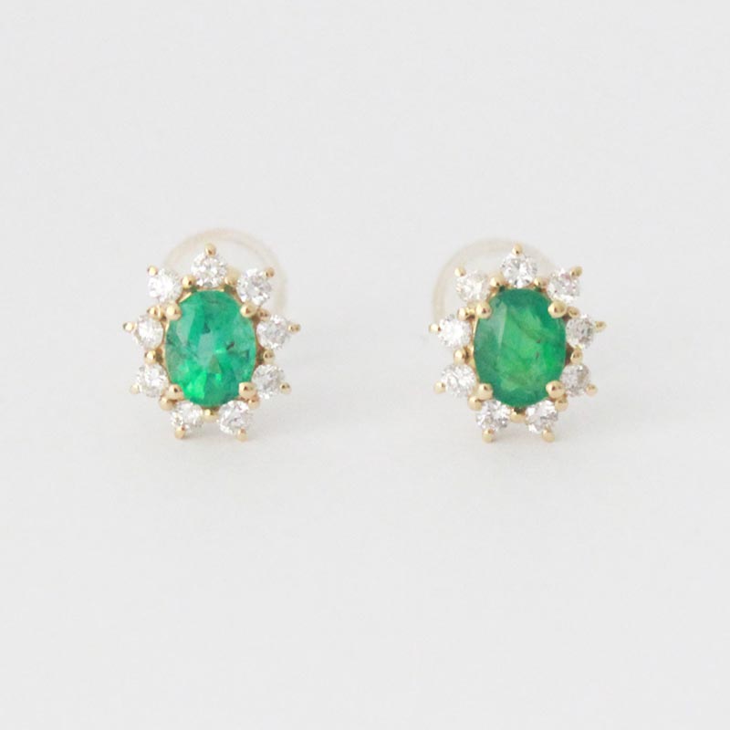 ARETES DE ORO AMARILLO ESMERALDAS Y BRILLANTES