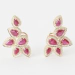 ARETES DE ORO AMARILLO HOJAS DE ESMERALDAS Y BRILLANTES