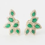 ARETES DE ORO AMARILLO HOJAS DE RUBIES Y BRILLANTES