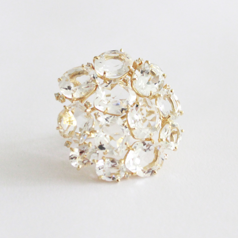 ANILLO ORO AMARILLO REDOND DE PIEDRAS TOPACIOS BLANCO CON BRILLANTES