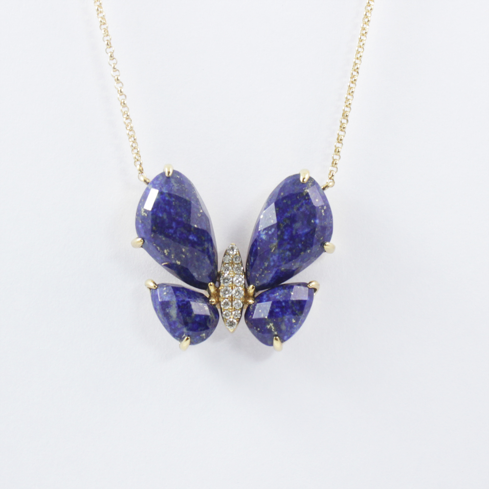 COLLAR DE ORO AMARILLO MARIPOSA DE LAPISLAZULI CON BRILLANTES