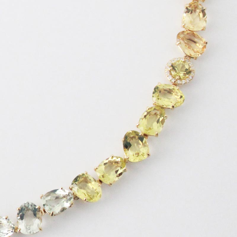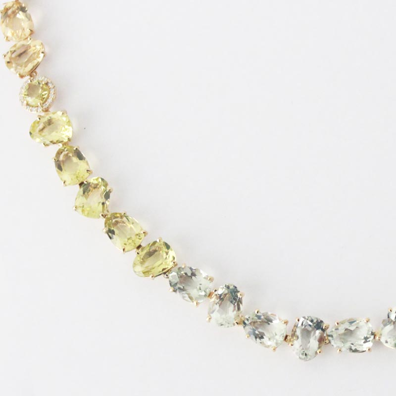 COLLAR DE ORO AMARILLO CITRINA AMARILLA TOPACIOS AMARILLOS, CUARZO VERDE Y PERIDOT