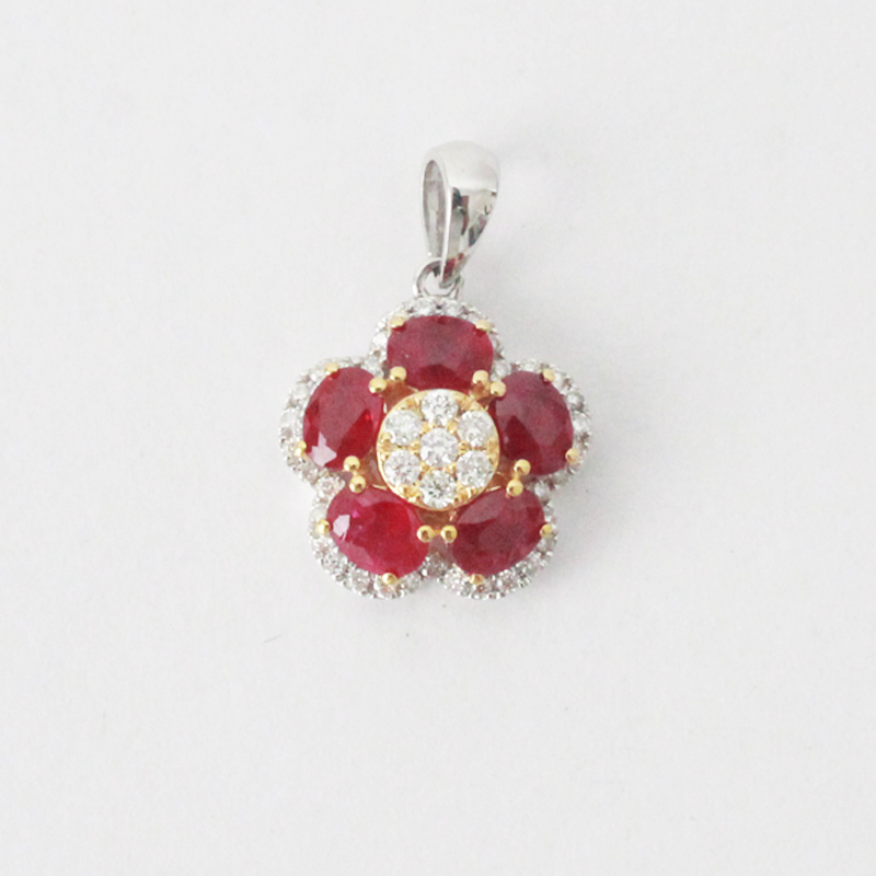 DIJE DE ORO COMBIANDO FLOR CINCO PETALOS DE BRILLANTES Y ESMERALDAS