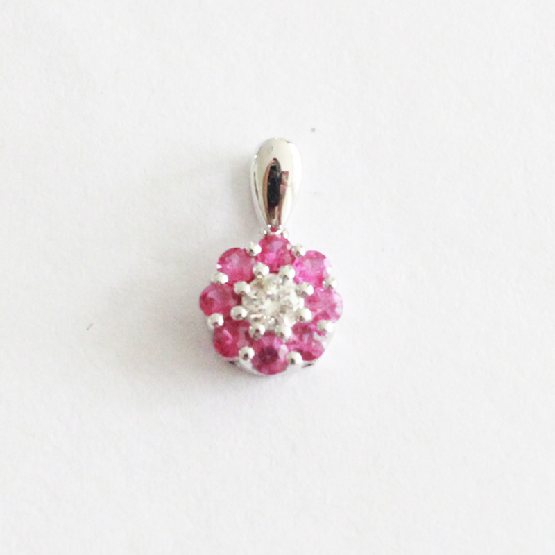 DIJE DE ORO BLANCO FLOR DE RUBIES EN EL CENTRO BRILLANTE