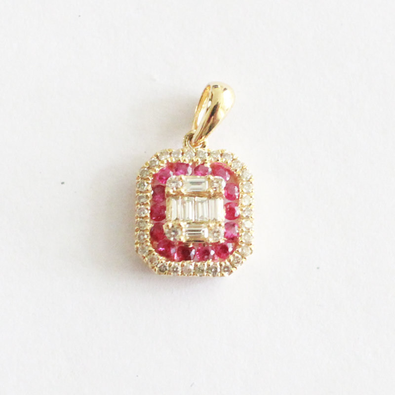 DIJE DE ORO AMARILLO RECTANGULO DE RUBIES CON BRILLANTES BAGUETTES