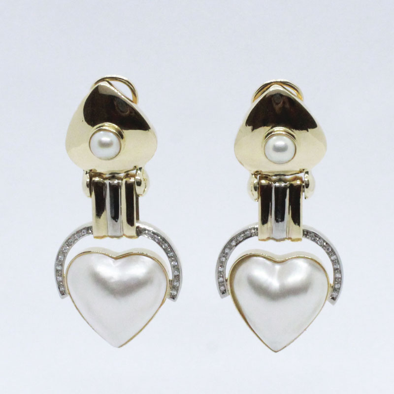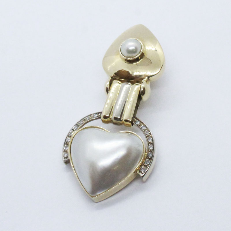 JUEGO DE ARETES Y DIJE EN ORO AMARILLO CON BRILLANTES Y PERLA