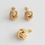 JUEGO DE ORO COMBINADO TRES TONOS DE ORO ARETES Y DIJE NUDOS